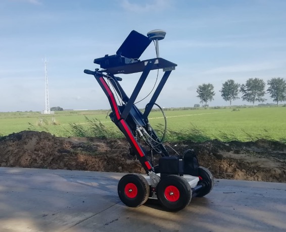 Naast het rijdend systeem beschikken wij ook over een model “kinderwagen”. Dit systeem wordt vooral ingezet op lastig te bereiken/ meten locaties. In Figuur 2 is dit systeem weergegeven.