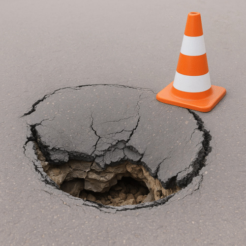 Sommige incidenten kun je vrijwel niet voorkomen. Ook sinkholes niet. Wat je wél kunt doen is alert blijven op kleine veranderingen in het wegdek. Zeker in risicogebieden, zoals locaties met oude rioleringen, kades of plekken rond kunstwerken en duikers. Daar kan die kleine verzakking zomaar een voorteken zijn van een zinkgat.